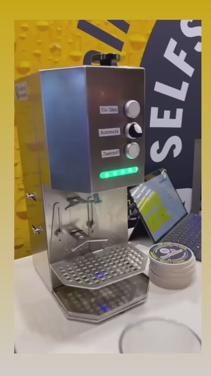 Dieses kompakte Zapfsystem ermöglicht es, auf Knopfdruck ein perfekt gezapftes Bier zu erhalten. Die intuitive Steuerung bietet Optionen wie "Ein Glas", "Automatik" und "Zapfstoß" für eine individuelle Anpassung. Das Gerät garantiert stets die ideale Menge Schaum und die perfekte Temperatur, um ein professionelles Zapferlebnis zu gewährleisten. Ideal für Bars, Restaurants oder den privaten Gebrauch, sorgt es für Effizienz und gleichbleibende Qualität.